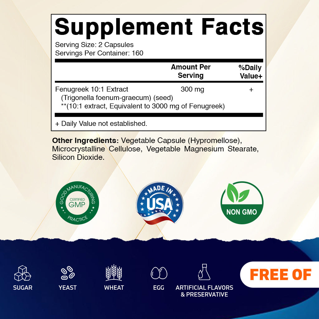 Fenugreek Capsules 3000mg - 320 Vegetarian Capsules
