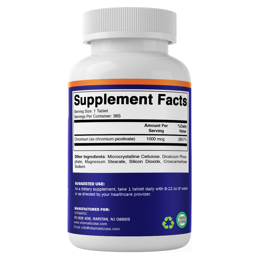 - High Potency Formula – Each tablet delivers 1000 mcg of Chromium as chromium picolinate.