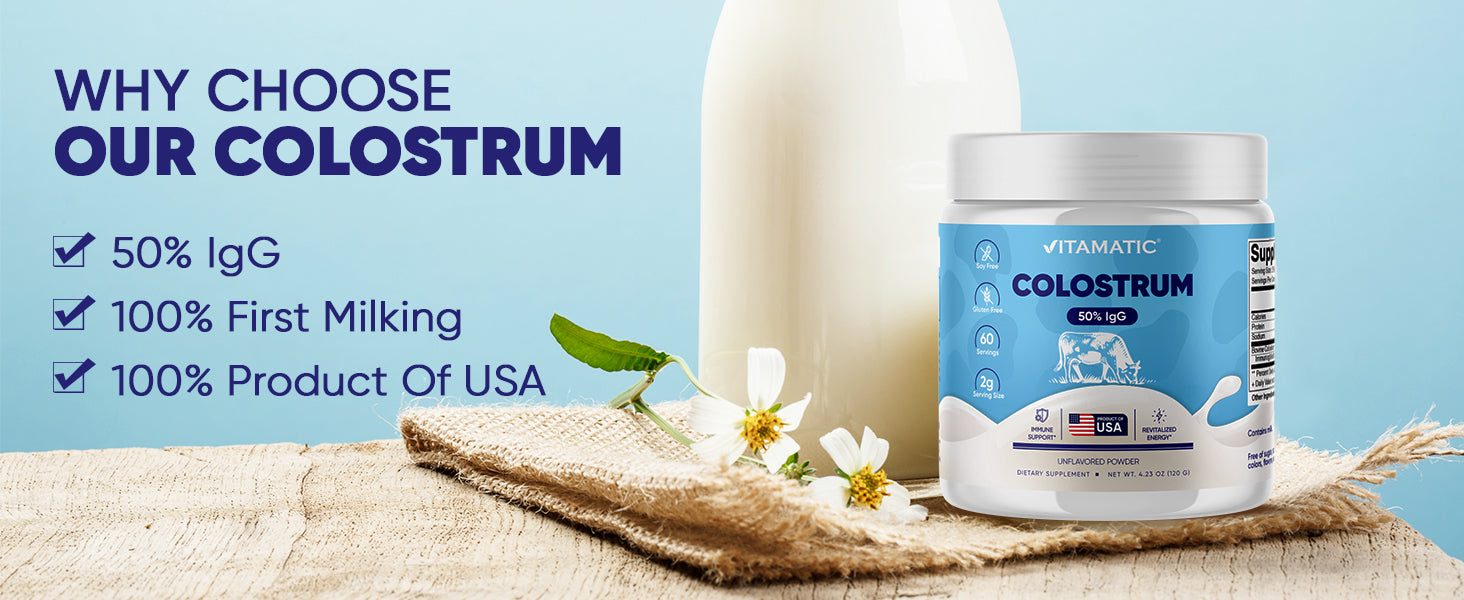 Bovine Colostrum Powder - 50% Highest IgG - 120 Gram - 60 Servings (Unflavored)