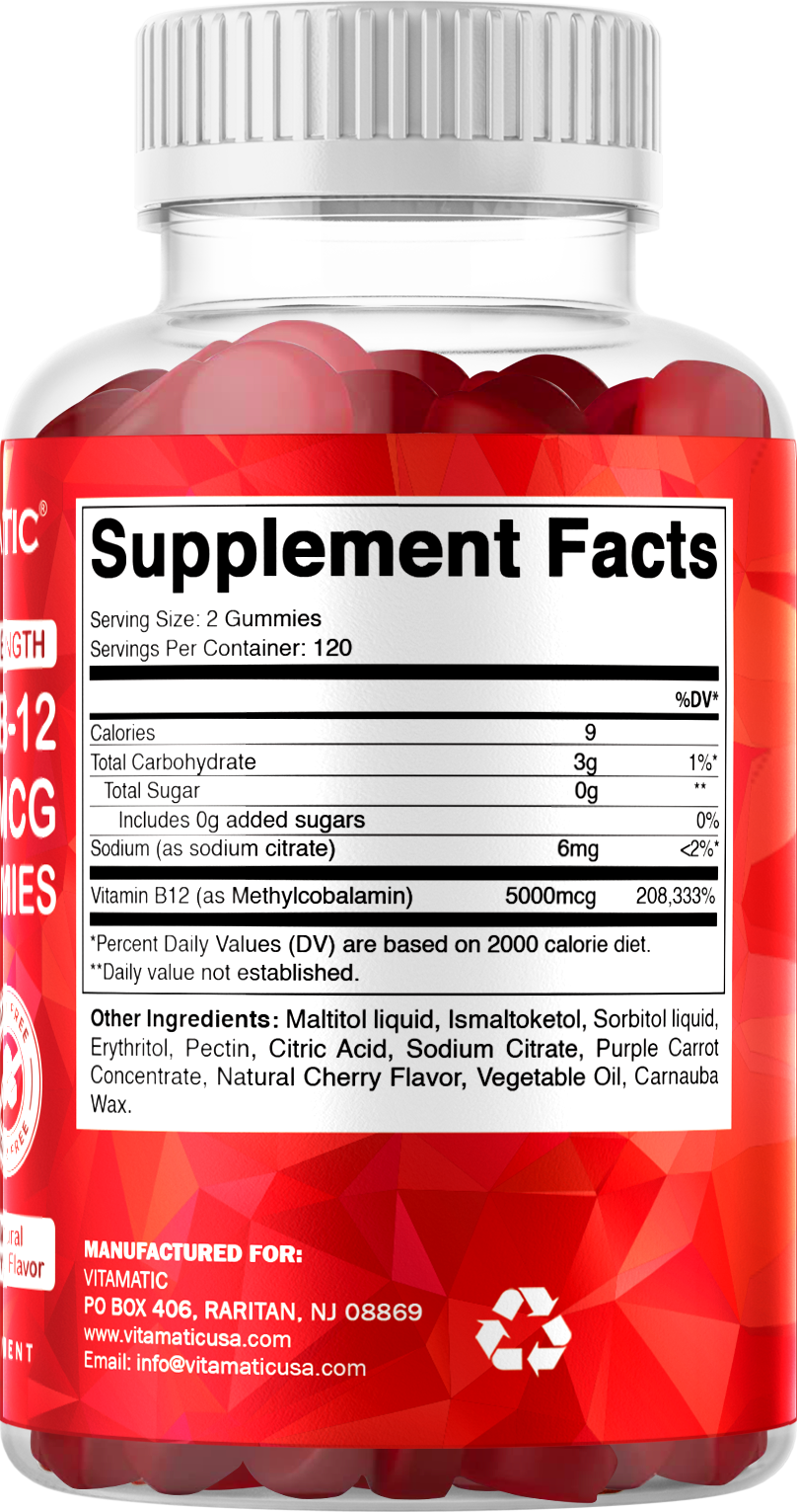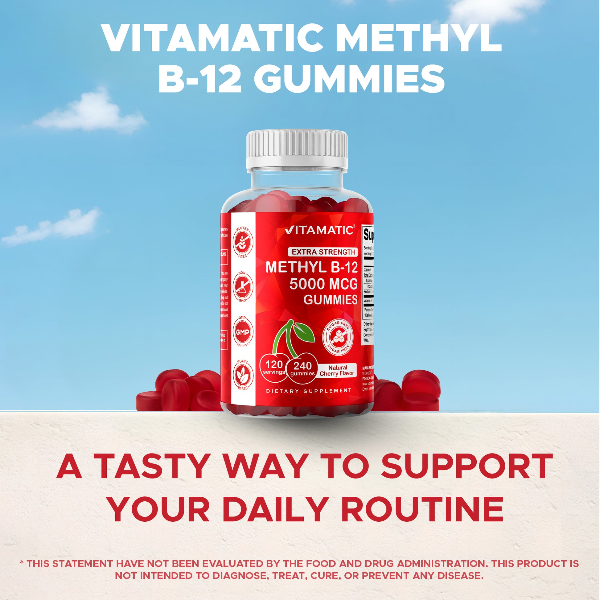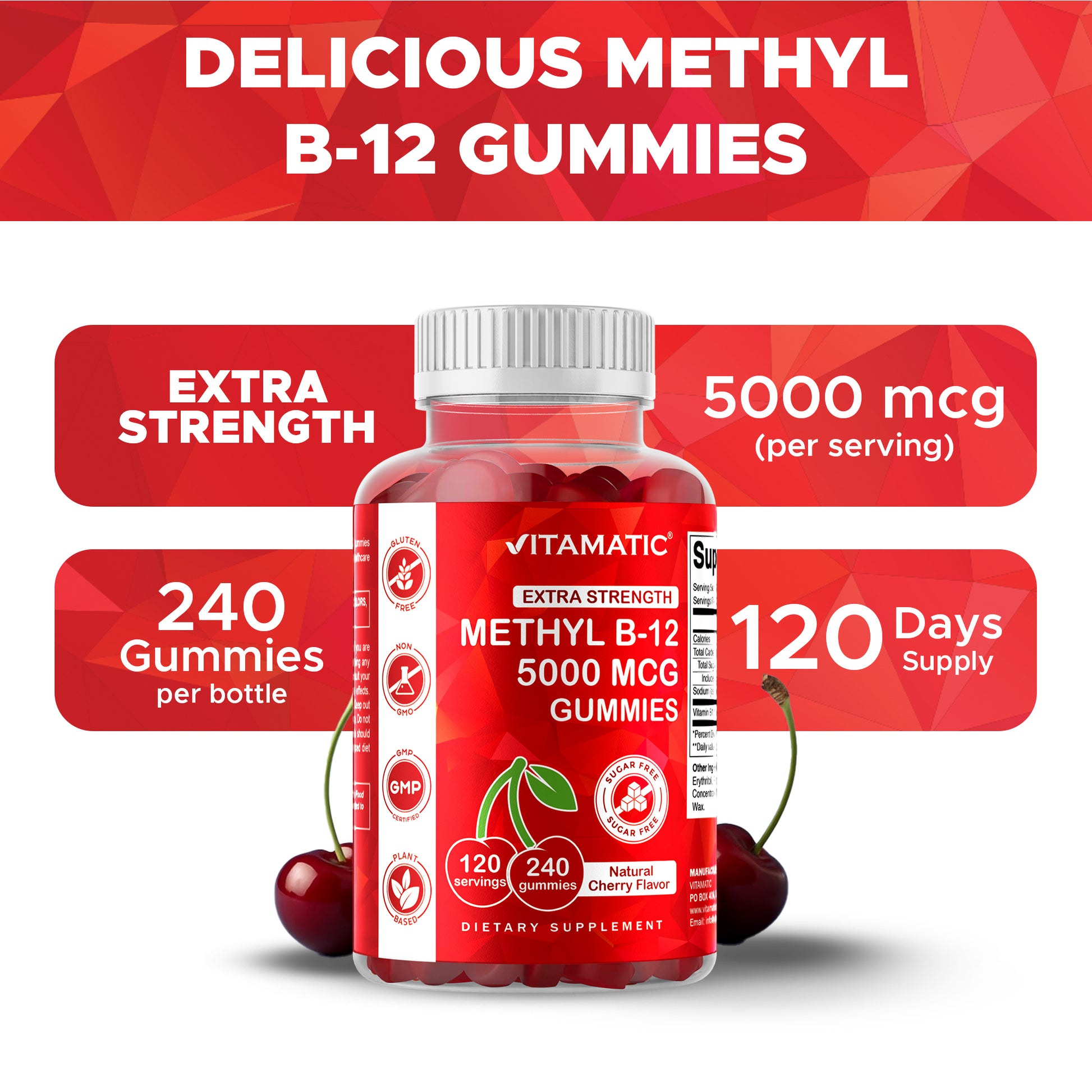 Extra Strength Vitamin B12 5000 mcg (Methyl B12) Gummies - 240 Count