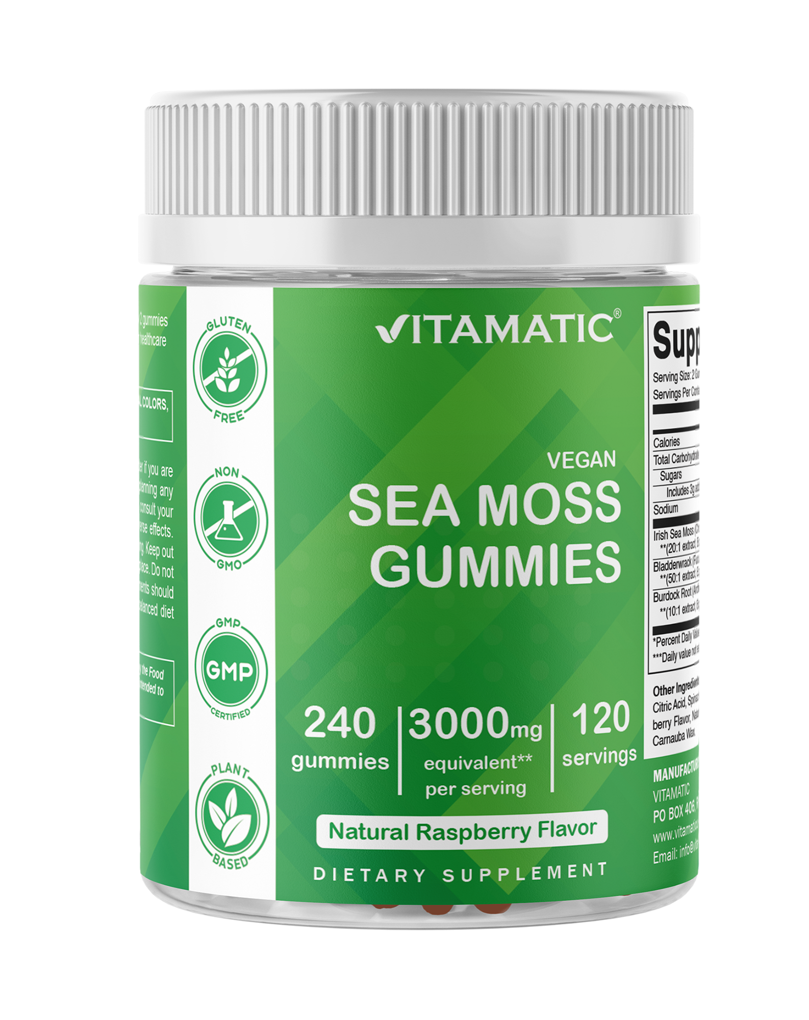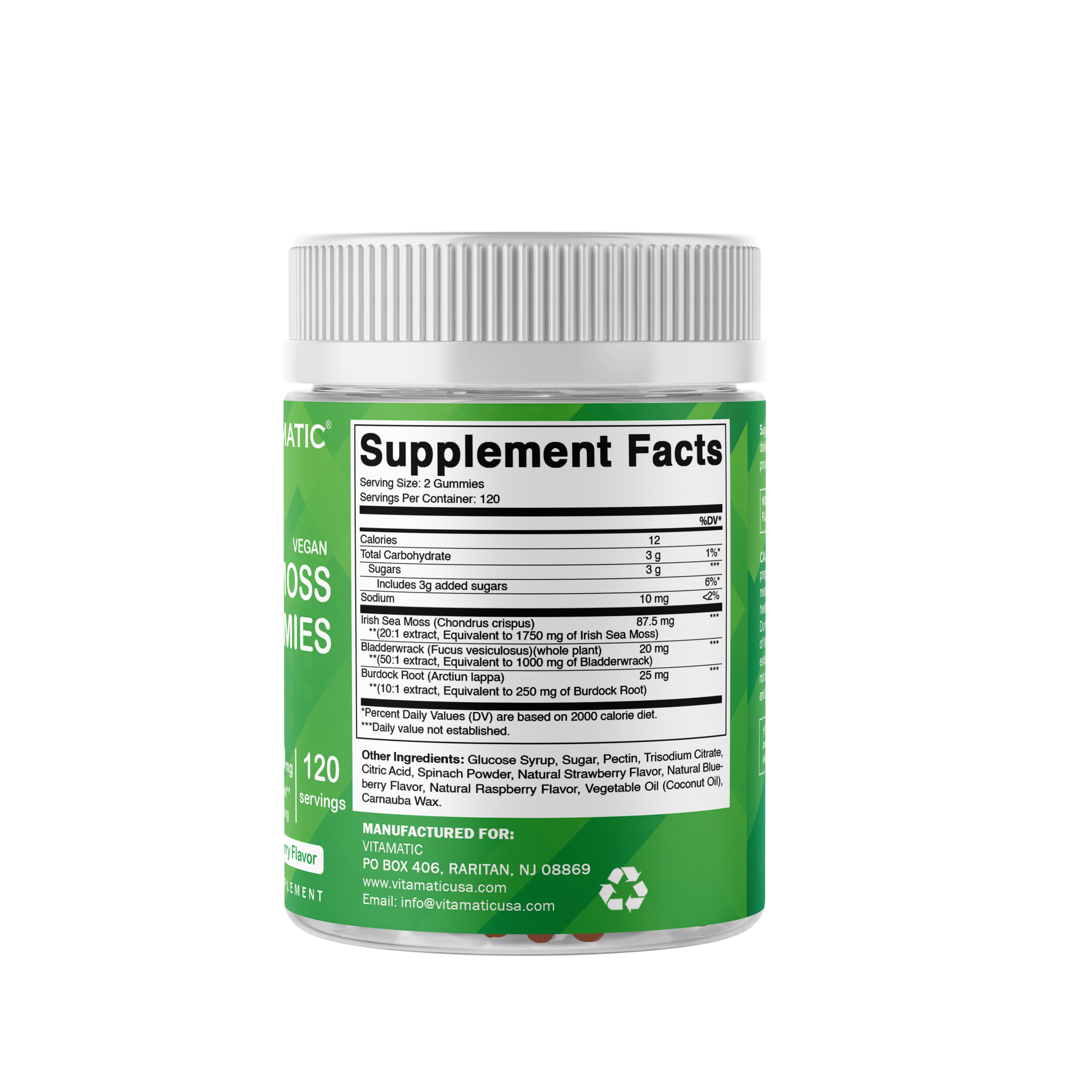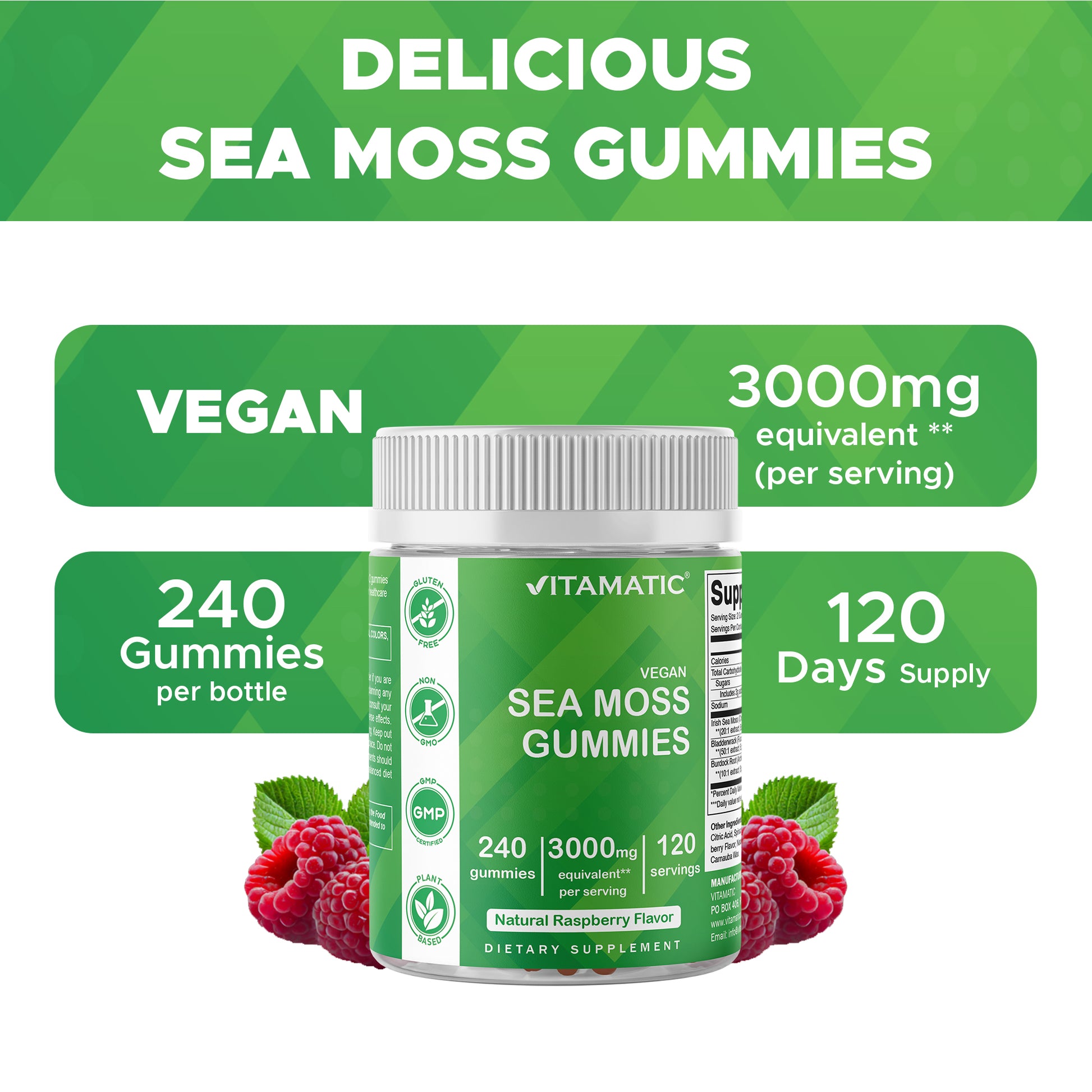 - DELICIOUS NATURAL RASPBERRY TASTE of Vitamatic Sea Moss Gummies - Avoid consuming Large Sea Moss Capsules, Tablets or Pills which give an unpleasant after taste & cannot go down easily