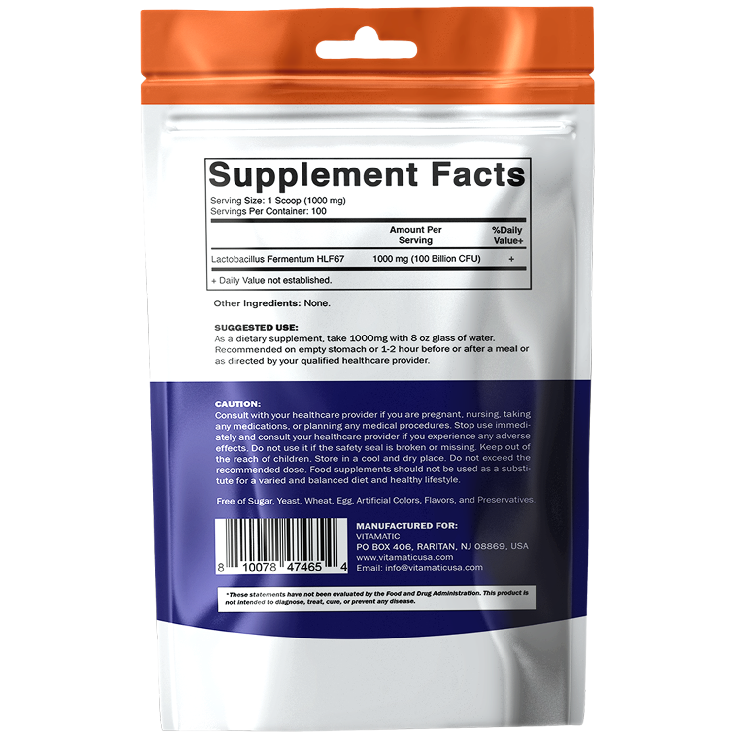 - Free of Soy, Yeast, Wheat, Egg, Artificial Color, Flavor, & Preservatives.