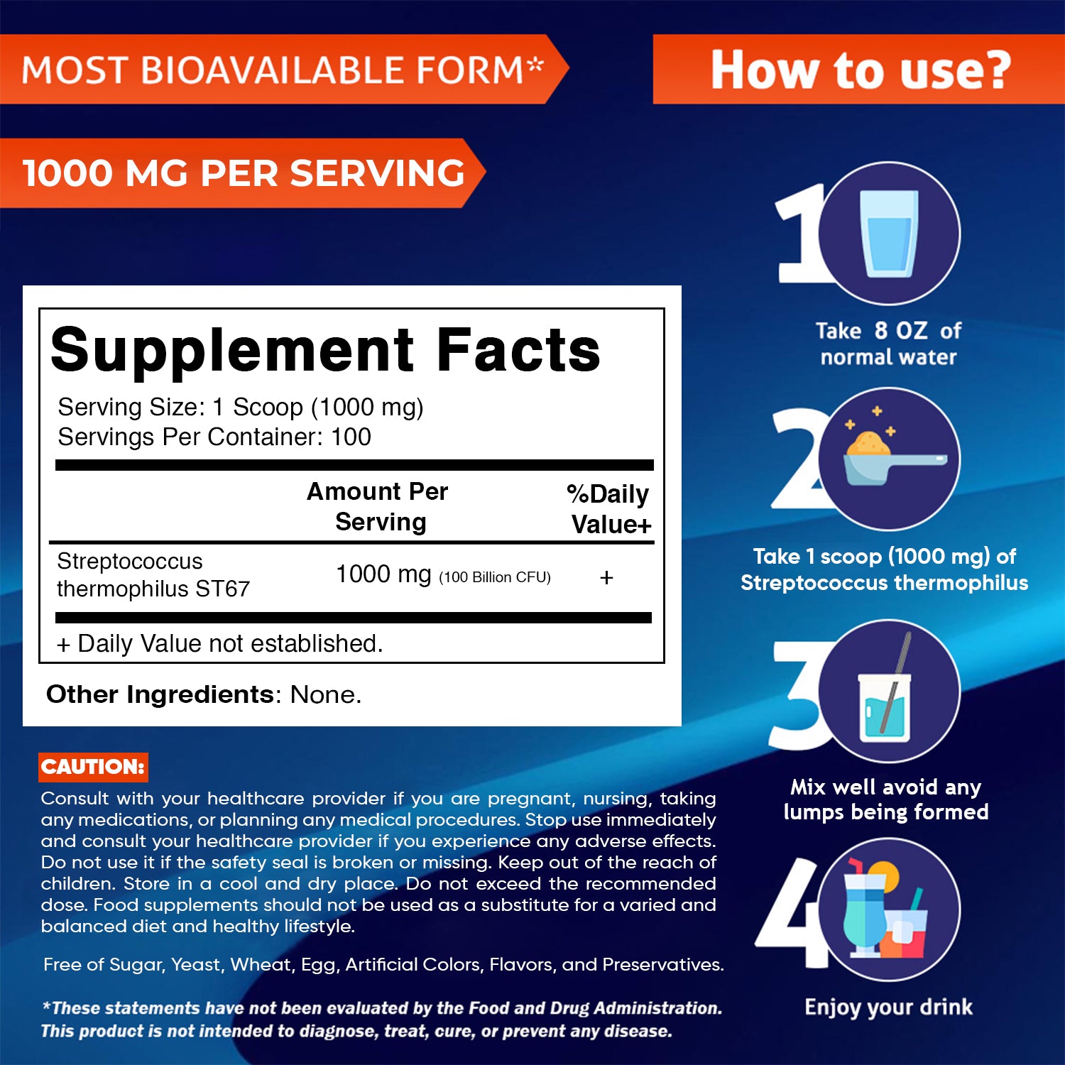 Streptococcus Thermophilus Probiotic Powder Digestive Health Support 100 Gram 100 Servings