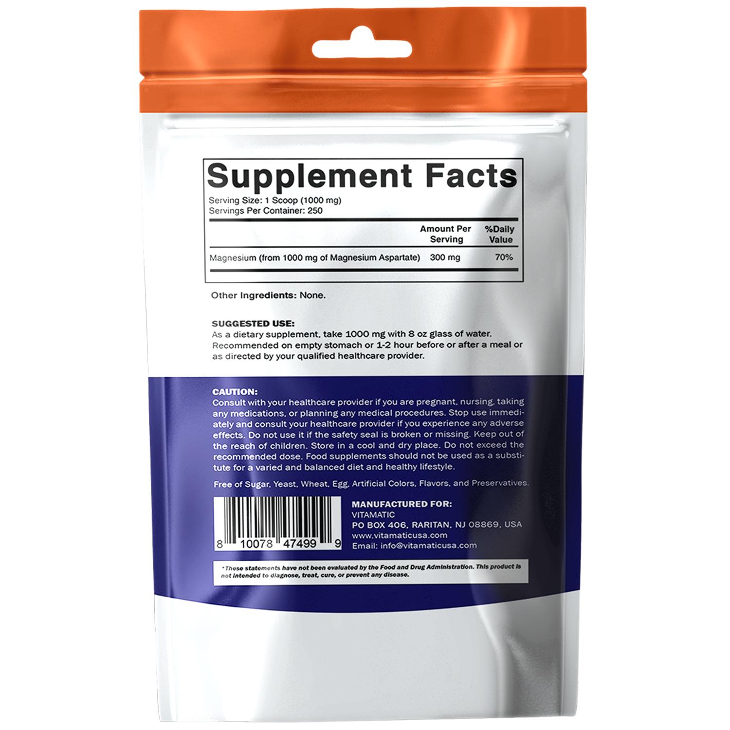 - Extra Strength Magnesium Supplement (Magnesium Aspartate 1000 mg per serving providing 200mg of Elemental Magnesium).