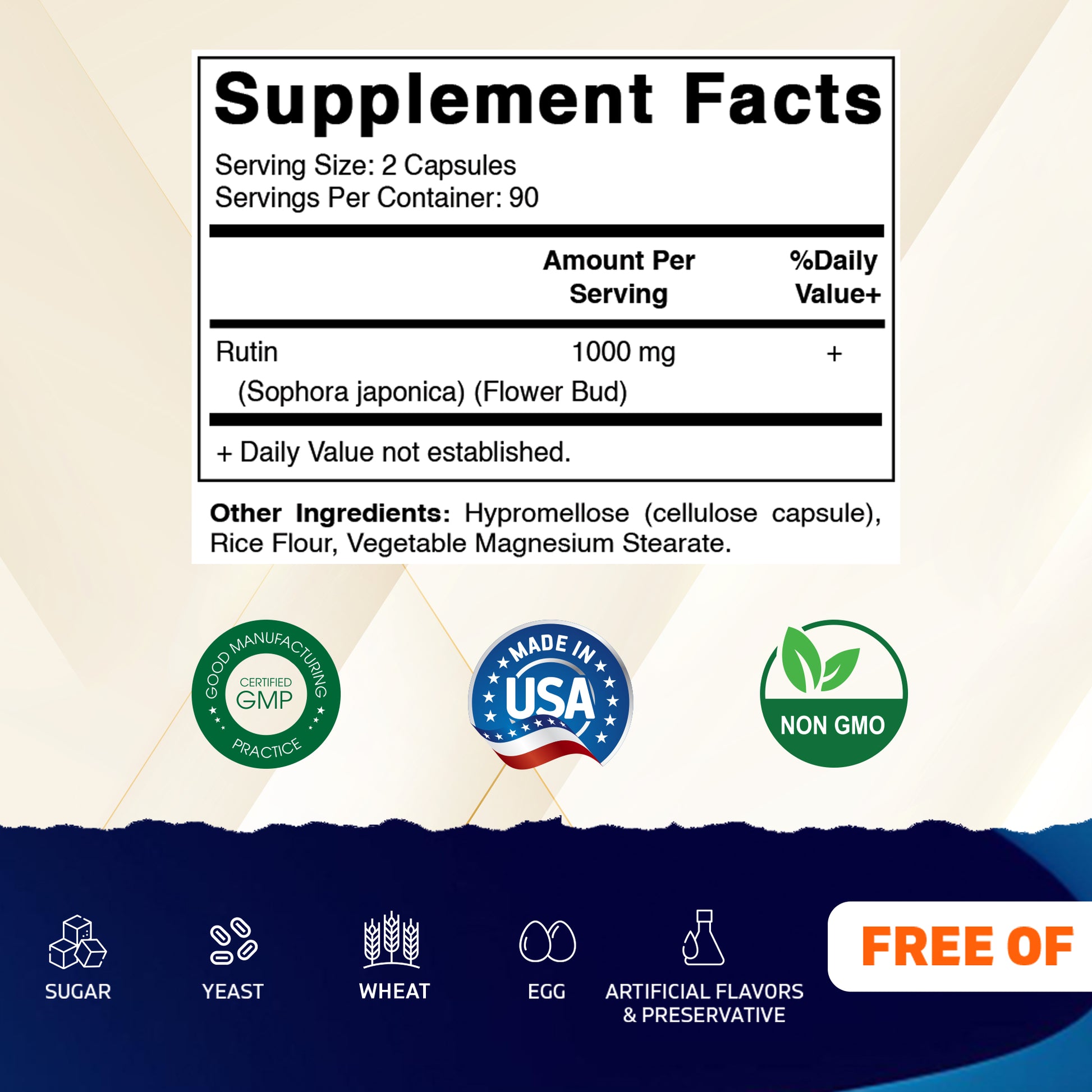 - High Potency: Each serving provides a potent 1000mg dose of pure Rutin.