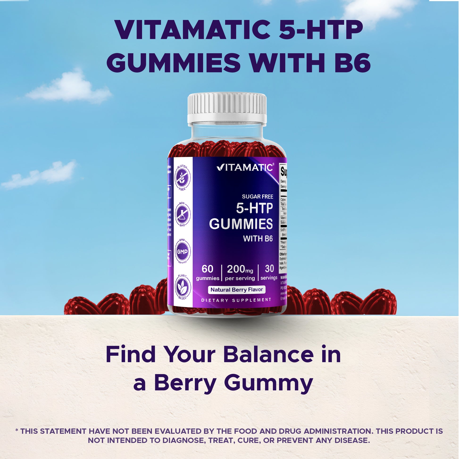 5-HTP, Vitamin B6, Maltitol, Isomaltol, Sorbitol, Erythritol, Maltitol, Pectin, Citric Acid, DL-Malic Acid, Sodium Citrate, Purple Carrot Concentrate, Natural Berry Flavor, Coating Agent (Vegetable Oil, Carnauba Wax