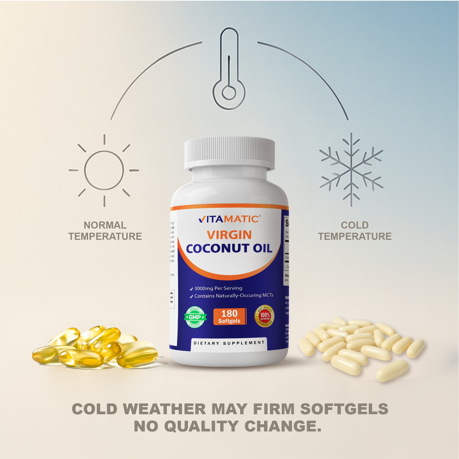 - Convenient Softgel Form: Easy-to-swallow softgels make supplementing with coconut oil hassle-free.