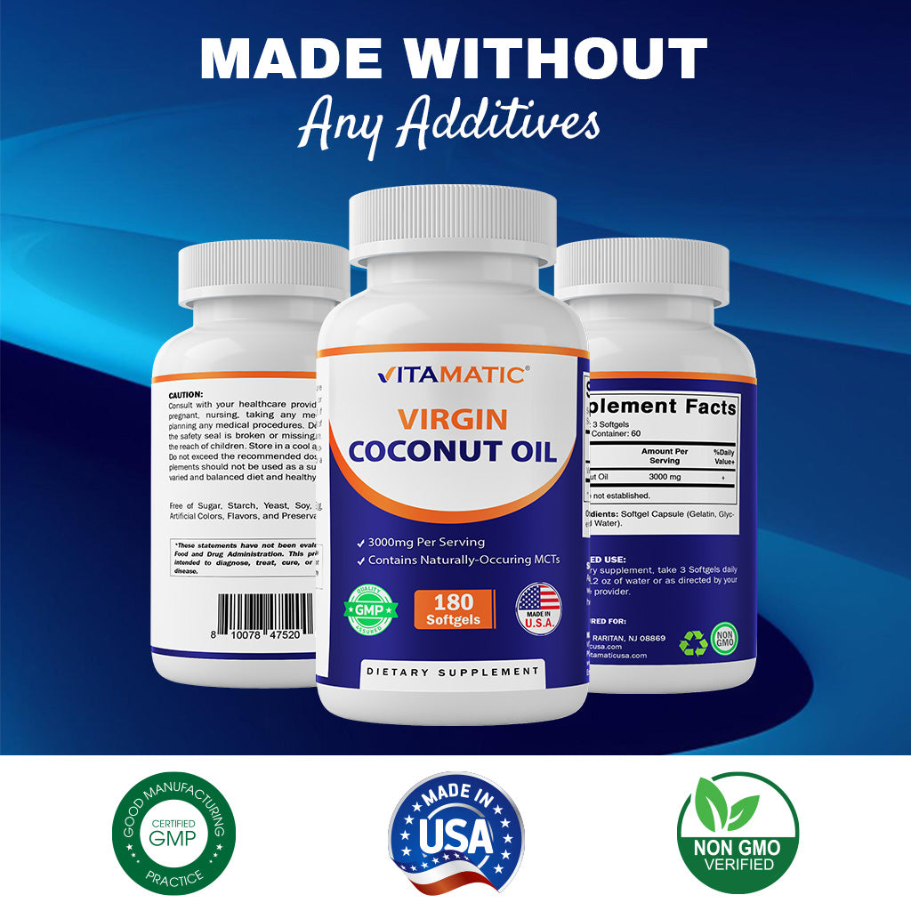 - Potent Coconut Oil Supplement: Each serving contains 3000 mg of Virgin Coconut Oil, providing a concentrated source of naturally occurring MCTs.