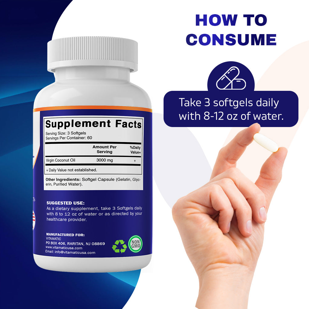 - Convenient Softgel Form: Easy-to-swallow softgels make supplementing with coconut oil hassle-free.