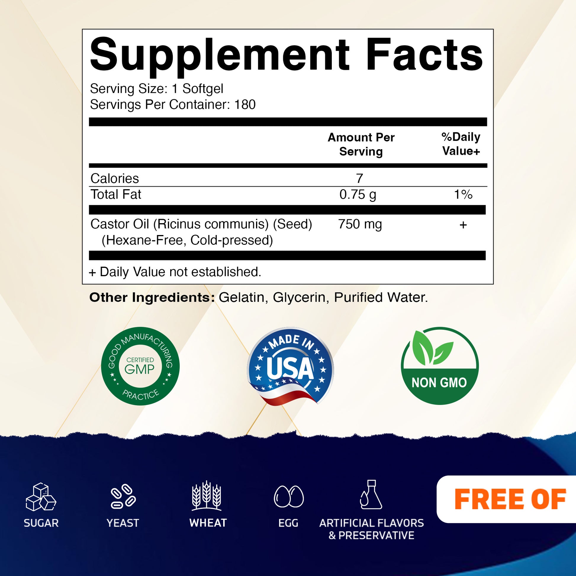 - Easy-to-Swallow Softgels – Designed for simple daily use without the strong taste of liquid castor oil.