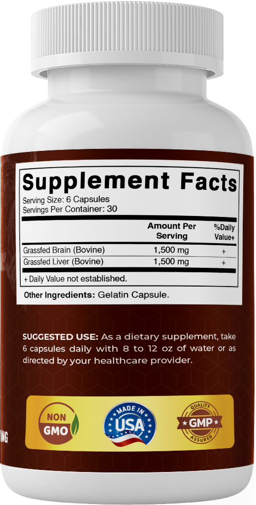 Vitamatic Grass Fed Beef Brain with Liver - 180 Capsules