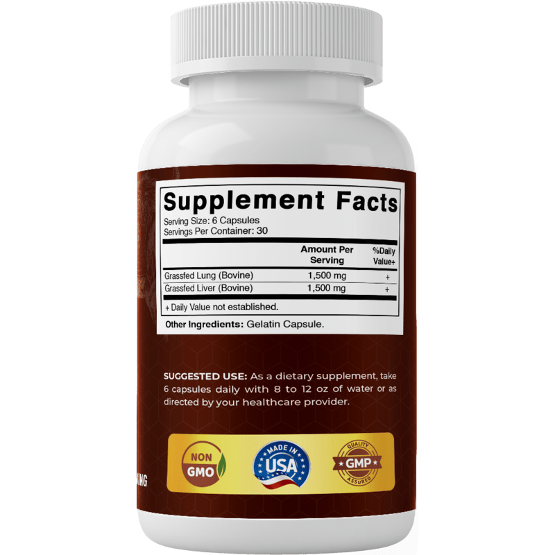 Vitamatic Grass-Fed Beef Lung with Liver 180 Capsules – Freeze-Dried, Non-GMO, Bovine Liver Supplement – (180 Capsules, Lung)