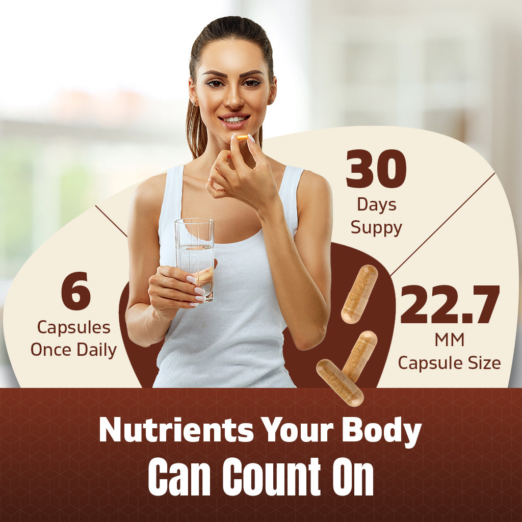 As a dietary supplement, take 6 capsules daily with 8 to 12 oz of water or as directed by your healthcare provider.