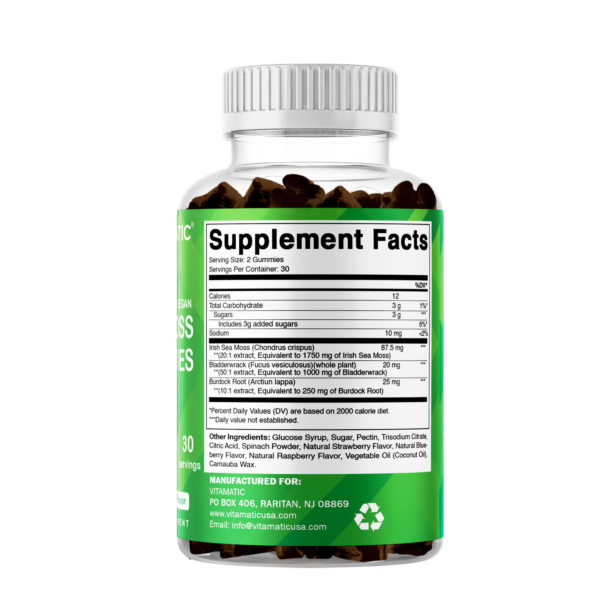 - DELICIOUS NATURAL RASPBERRY TASTE of Vitamatic Sea Moss Gummies - Avoid consuming Large Sea Moss Capsules, Tablets, or Pills which give an unpleasant after taste & cannot go down easily.