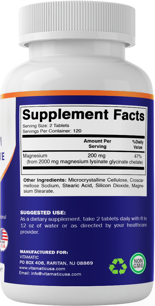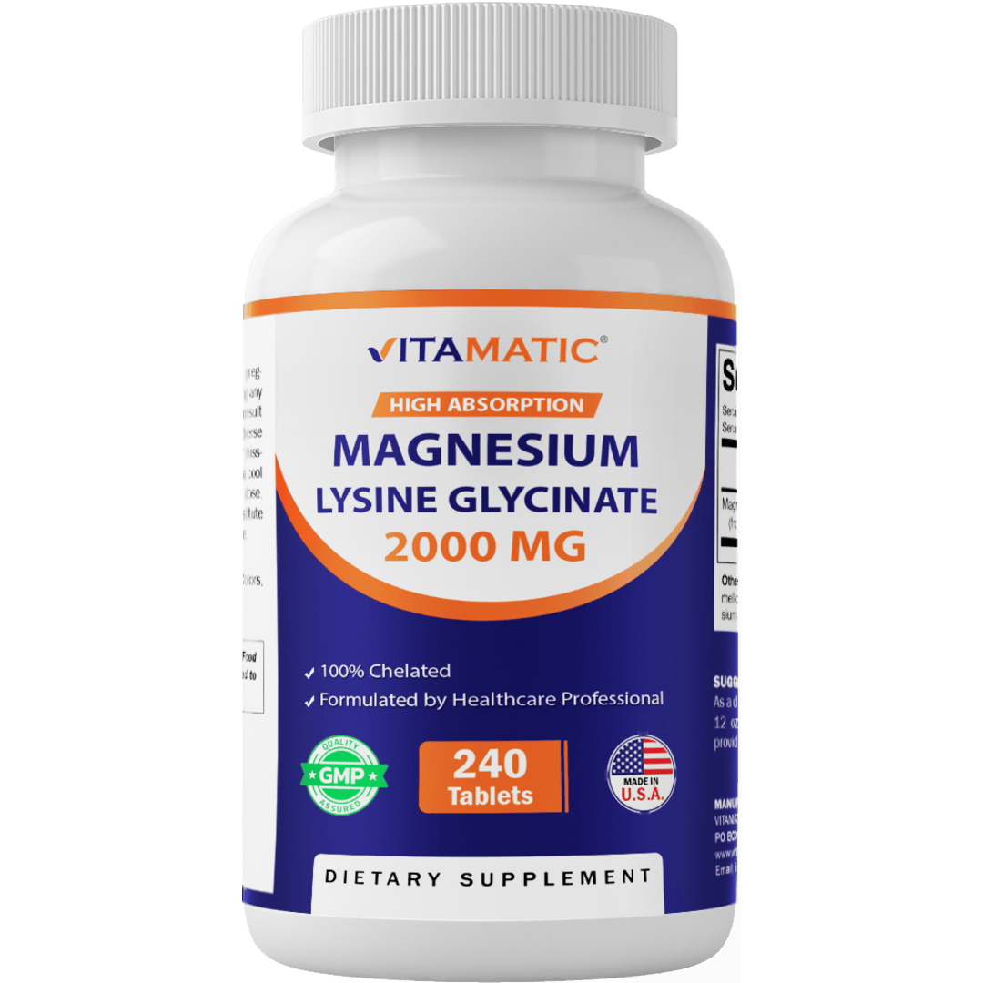 Vitamatic Magnesium as Glycinate Lysinate – 240 Tablets – 100% Chelated Magnesium