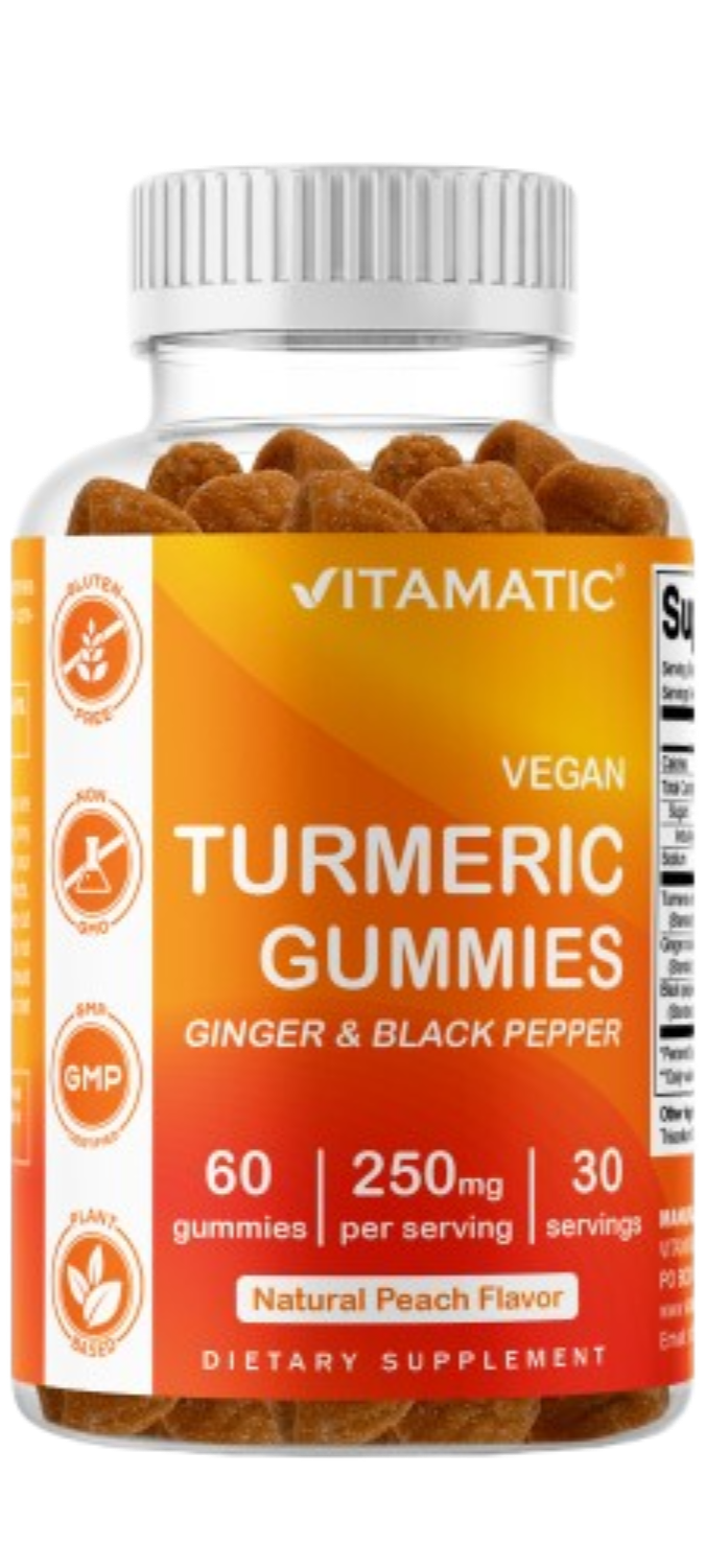 - Standardized 95% Curcuminoids for Healthy Joint Function – Vitamatic Turmeric gummies are made with black pepper & ginger for better absorption.